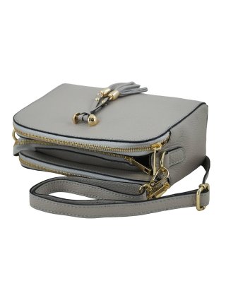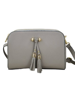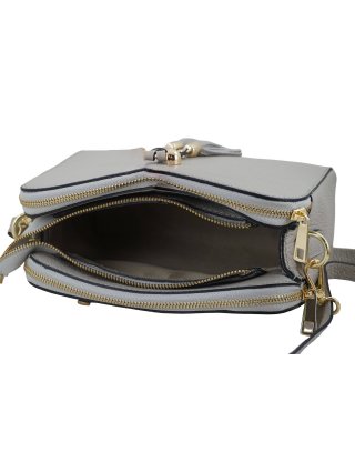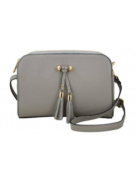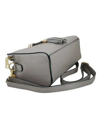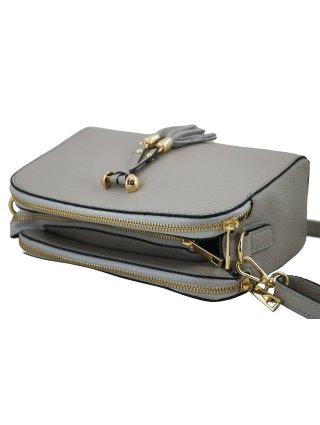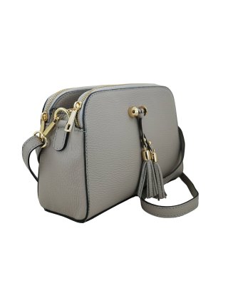 Listonoszka skórzana z kieszeniami - Szara jasna